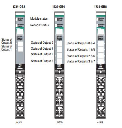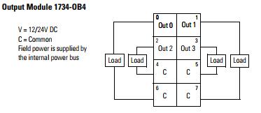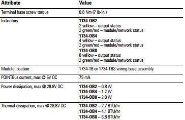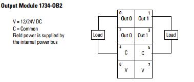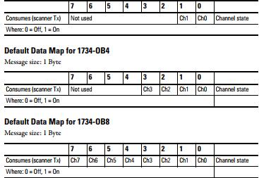 تستهلك الوحدة النمطية 1 بايت من بيانات الإدخال / الإخراج (الماسح الضوئي Tx). خريطة البيانات الافتراضية لوحدة إخراج 1734-OB2